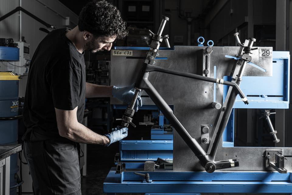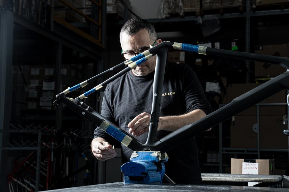 At Colnago's Cambiago site, tubes and joints are shaped, finished and glued to form frames of different sizes.